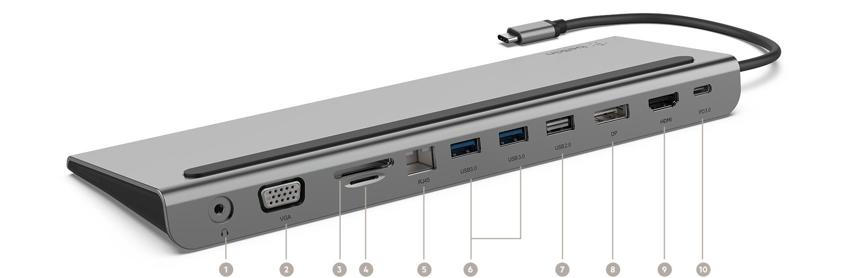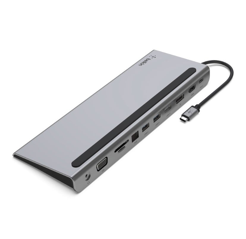 موزع متعدد المنافذ من ماركة belkin , مع هذا الموزع بامكانك الان تحويل جهازك الكمبيوتر المحمول المزود بمنفذ USB-C إلى محطة عمل مثالية باستخدام قاعدة التوصيل متعددة المنافذ USB-C 11-in-1. يمنحك هذا الحل الشامل إمكانية الوصول إلى المنافذ التي تخلصت منها أجهزة الكمبيوتر المحمولة الأحدث في السنوات الأخيرة ، مما يسمح لك بالاتصال بالشاشات وبطاقات SD ومحركات الإبهام والمزيد من خلال منفذ USB-C الخاص بها. وهو يدعم الشحن المار حتى 100 واط ، لذا لا يتعين عليك الاختيار بين توسيع المنفذ والطاقة. تمنحك محطة الإرساء هذه ما يصل إلى 5 جيجابت في الثانية من عرض النطاق الترددي بين الأجهزة المتصلة والكمبيوتر المحمول الخاص بك مع دعم دقة عرض عالية الدقة تصل إلى 4K من خلال منافذ الفيديو HDMI و DisplayPort و VGA. بالإضافة إلى ذلك ، من خلال منفذ Gigabit Ethernet ، سيكون لديك دائمًا اتصال إنترنت آمن.