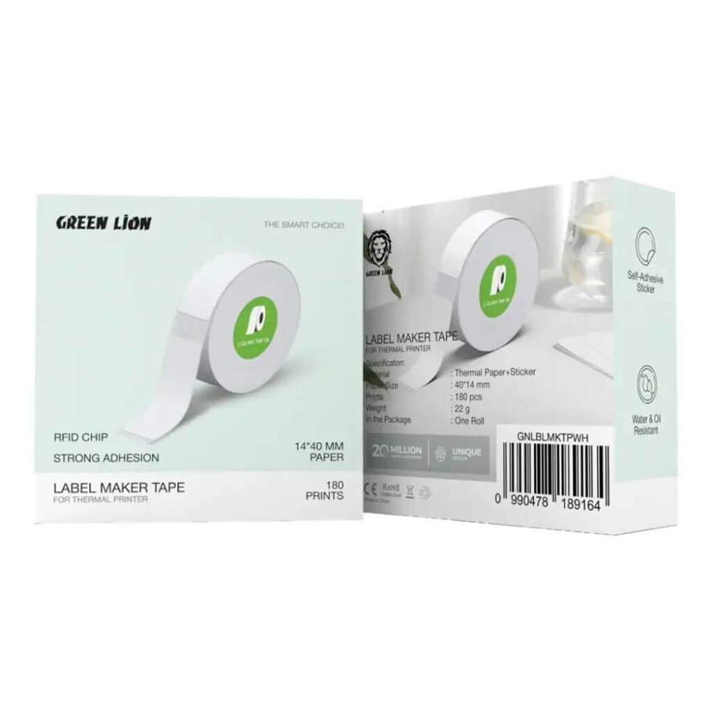 شريط Green Lion Label Maker Tape الأبيض مصمم خصيصًا للعمل مع الطابعات الحرارية من جرين ليون ليمنحك طباعة عالية الوضوح.