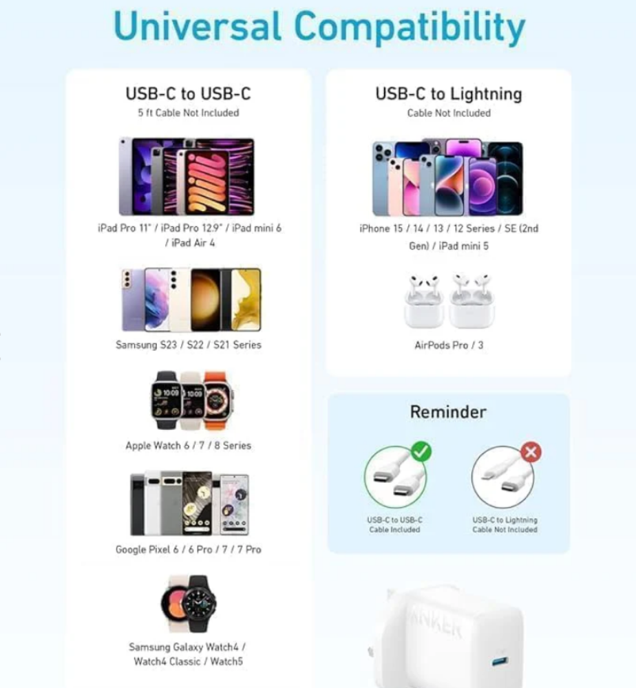 تم تصميم شاحن Anker select وكابل USB-C إلى USB-C بطول 5 أقدام المضمن خصيصًا لتوفير تجربة شحن خالية من العيوب لجهاز iPad الخاص بك