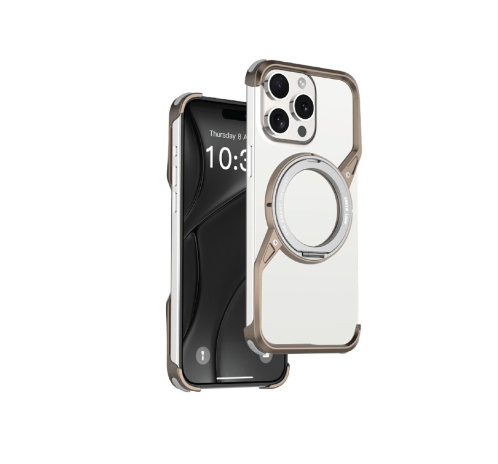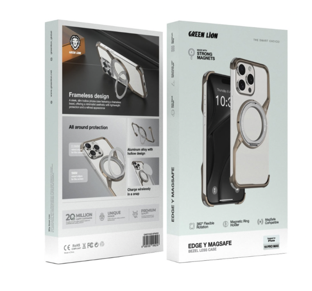 قرين لايون - كفر ايفون 16ProMaxشفاف مع مسكة دائرية - ذهبي